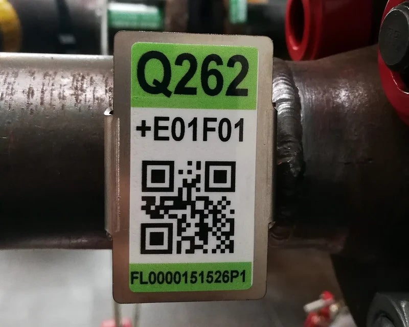 Fixing Tie Set | 60 x 35 mmNaast hangende tags zijn ook Print & Protect labels uiterst geschikt voor het coderen van leidingen, kleppen en appendages. Dit label kun je met behulp van de Fixing Tie Set (indirect) op een leiding bevestigen. Dit voorkomt lijmresten op leidingen, is bestand tegen hoge temperaturen en geeft de uitstraling van een hoogwaardige graveerplaat. De Fixing Tie Set is zowel een kunststof als een RVS-316 uitvoering verkrijgbaar.