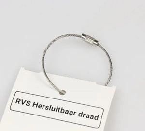 Sterk RVS-316 hersluitbaar draad voor het bevestigen van industriële tags. Dankzij de handige sluiting kan je het draad eenvoudig losdraaien en opnieuw gebruiken.