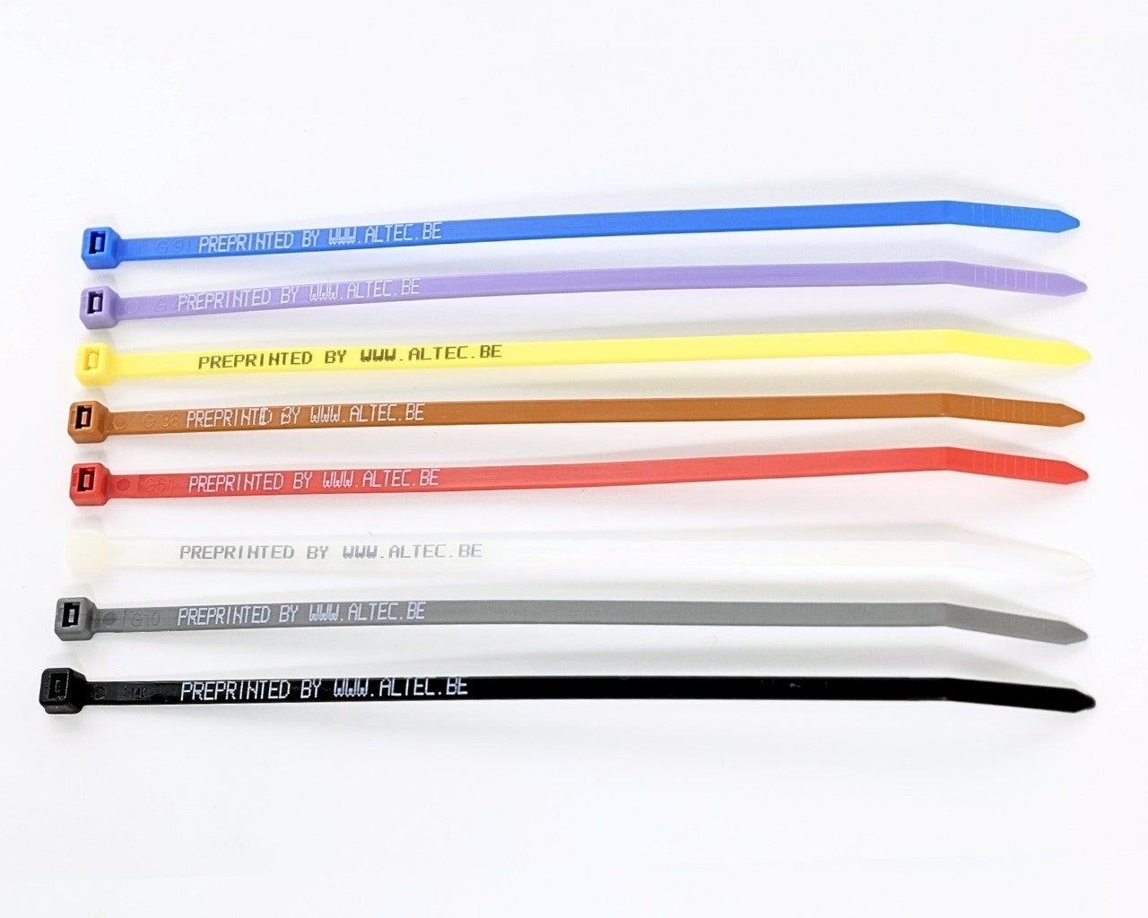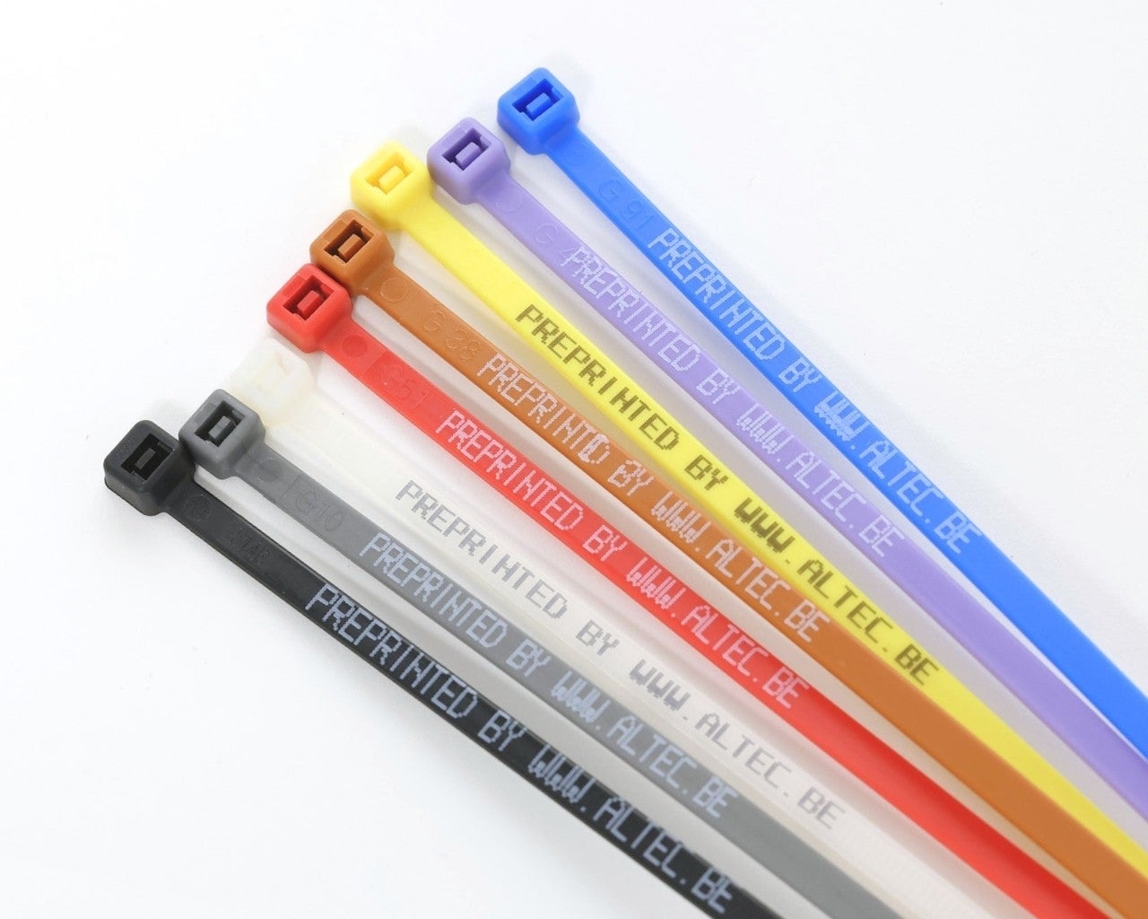Voorbedrukte nylon kabelbandjes voor het bevestigen van de ChainTag, HoseTag, MultiTag, keuringsschijven, Industriële Tags of ADC Kabelmerkers. De kabelbandjes zijn beschikbaar in zwart, grijs, wit, rood, bruin, geel, oranje, groen, paars en blauw. Bedrukken kan in wit en zwart.