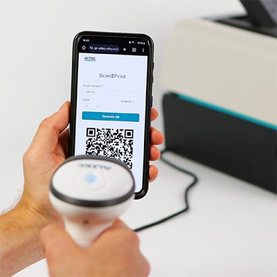 Voor stand-alone printen met onze ATP-printers zijn er verschillende mogelijkheden. Enerzijds kan je werken met een toetsenbord om de labelgegevens manueel in te voeren. Anderzijds kan je met onze barcodescanner moeiteloos een QR-code of barcode scannen, waarna de juiste data automatisch op het label wordt afgedrukt. Uiteraard kan je deze invoermethoden ook combineren, afhankelijk van wat het best past bij jouw workflow.
