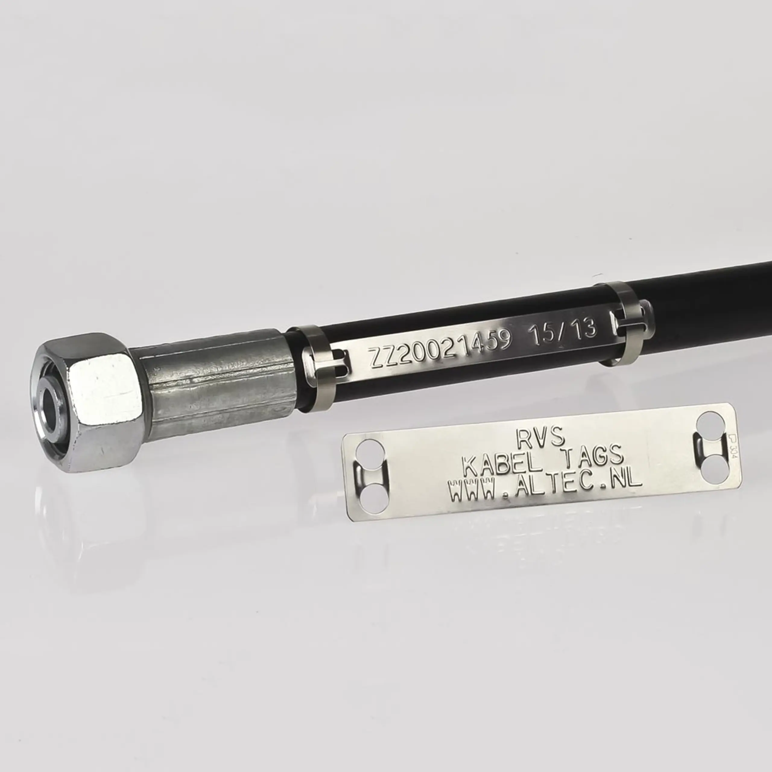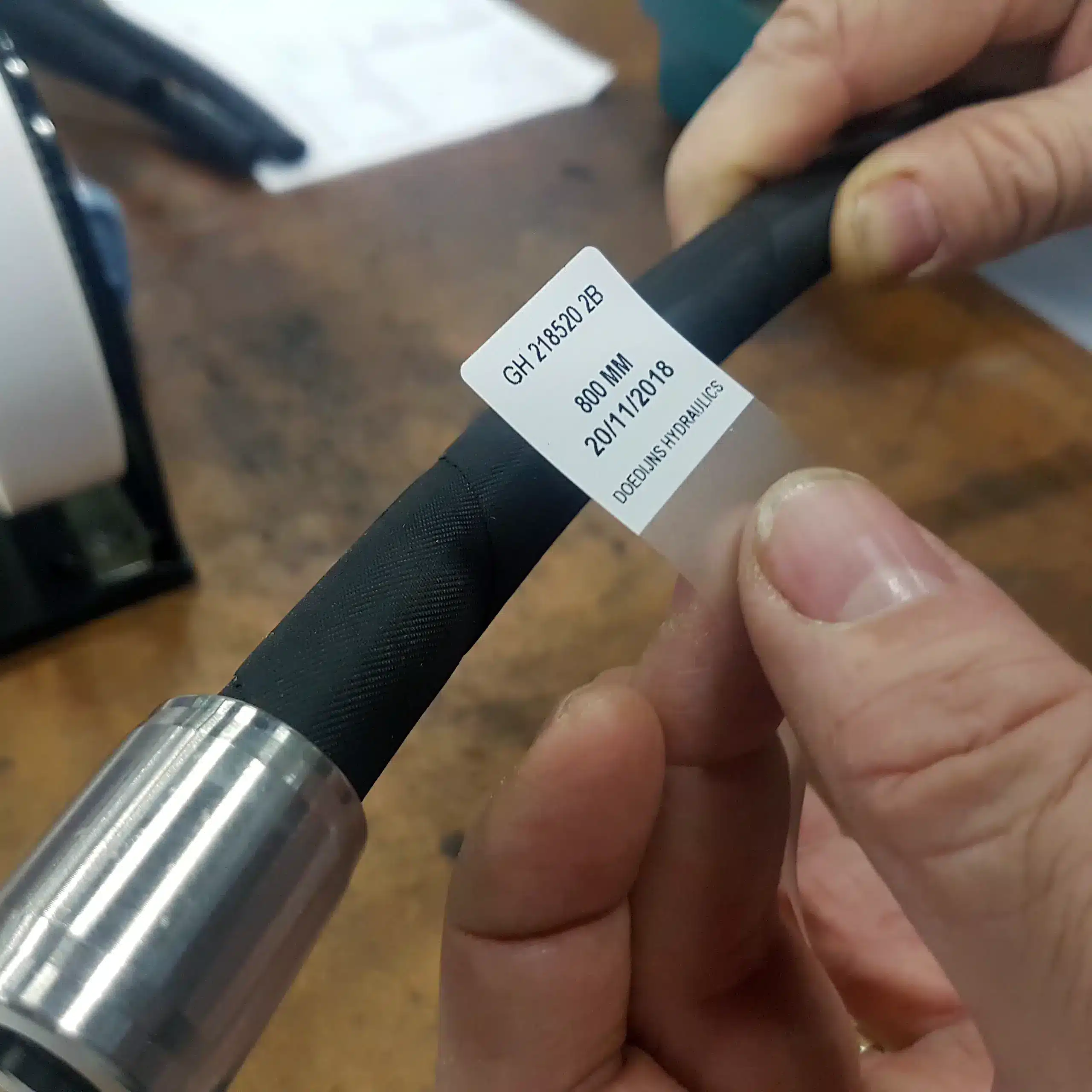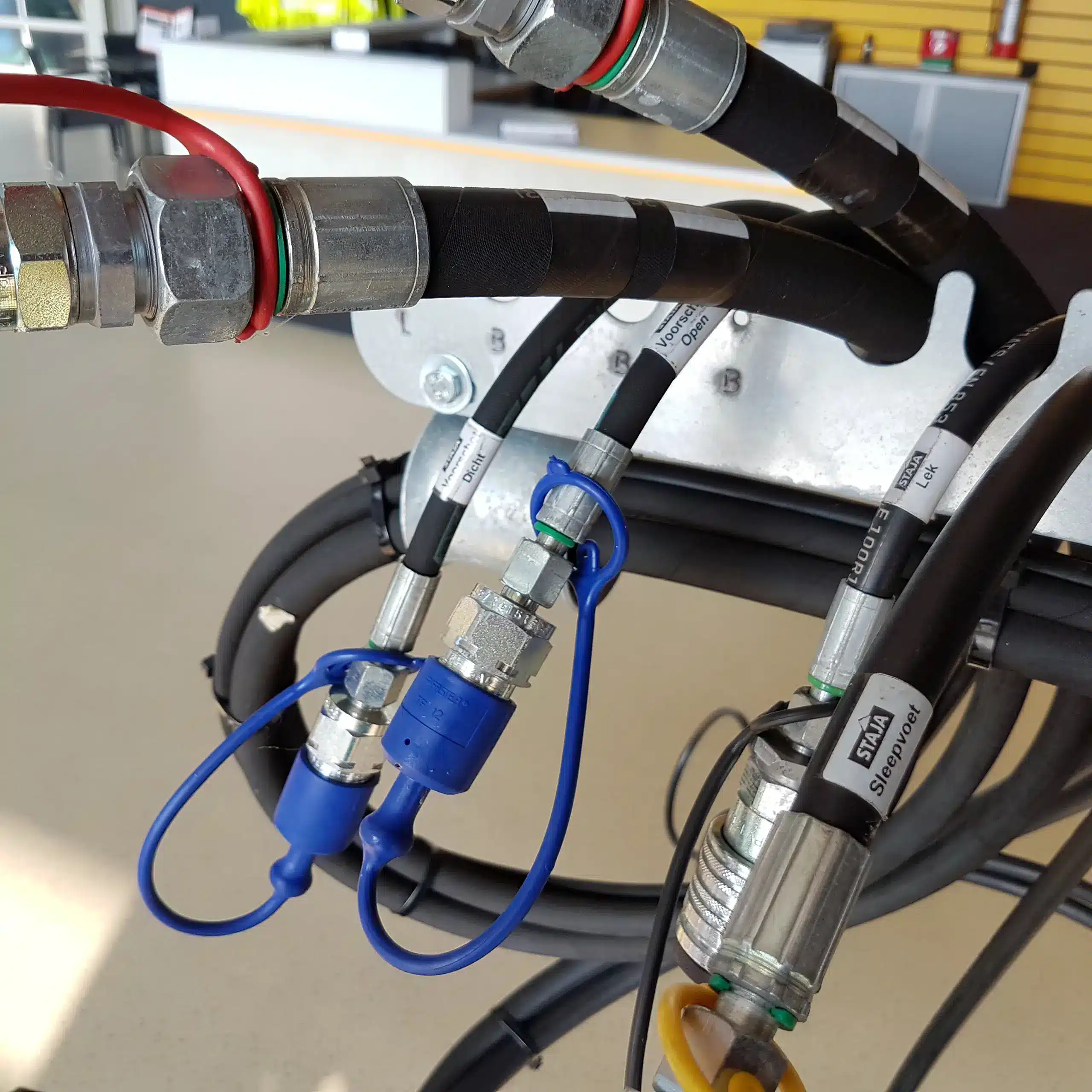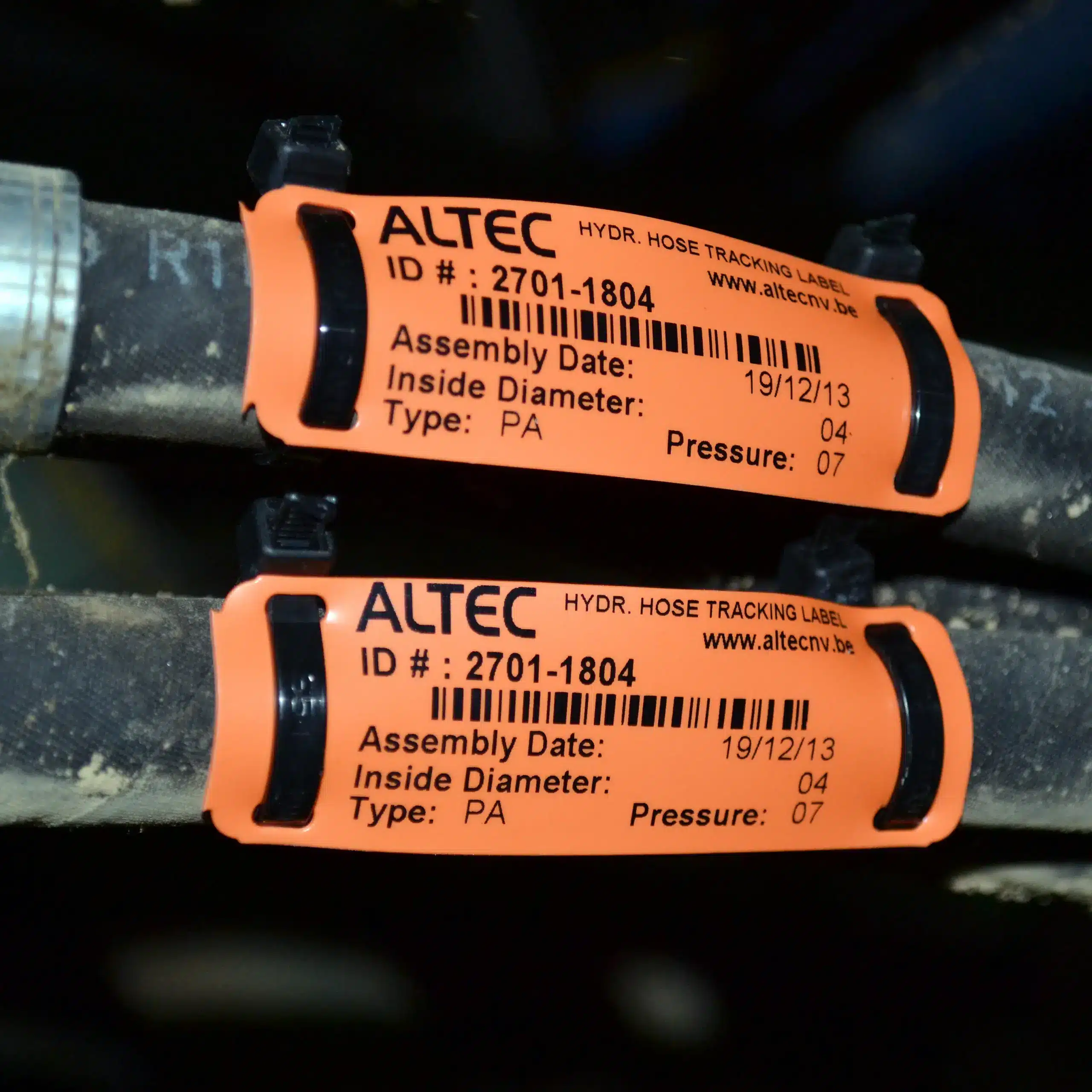 Chaque flexible hydraulique est unique par son diamètre, sa longueur et son raccord. Pour les réparations et la garantie, un bon enregistrement des flexibles est donc extrêmement utile. Grâce au codage, vous pouvez identifier immédiatement le flexible concerné. Ainsi, la fabrication d’un flexible de remplacement est beaucoup plus rapide et les pannes chez vos clients sont résolues plus efficacement. Il est obligatoire de démontrer que les flexibles hydrauliques sont sûrs à l’usage. La norme NPR 5527 stipule qu’un contrôle annuel doit avoir lieu. Pour indiquer qu’un flexible a été contrôlé, vous pouvez fixer une étiquette de contrôle ainsi qu’une pastille de certification. De cette manière, il est clairement visible lorsqu’un flexible est conforme.