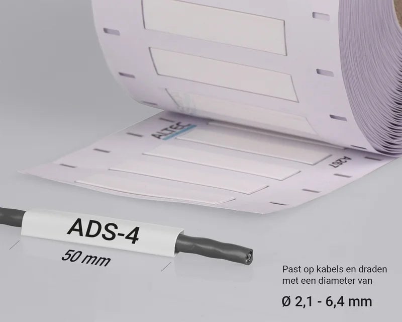 ADS Krimpkousen hebben een krimpratio van 3:1. Ze zijn beschikbaar in de kleuren wit en geel, zijn halogeenvrij, rookarm en vlamvertragend.