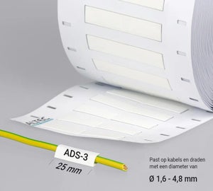 ADS Krimpkousen hebben een krimpratio van 3:1. Ze zijn beschikbaar in de kleuren wit en geel, zijn halogeenvrij, rookarm en vlamvertragend.