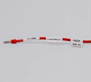 Draadlabel | 14 x 19 mm | WitDit zelfklevende en flexibele vinyl label is op 3 manieren op een draad te bevestigen. Horizontaal of verticaal als vlag en je kunt het label rondwikkelen (zoals bij een wikkellabel). Hierdoor kun je met één type label draden en kabels van 1 tot 6 mm labelen. Bijvoorbeeld glasvezel (3 mm) of UTP-kabels (5 mm). Door het flexibele materiaal is dit label ook erg geschikt voor dunne draden.