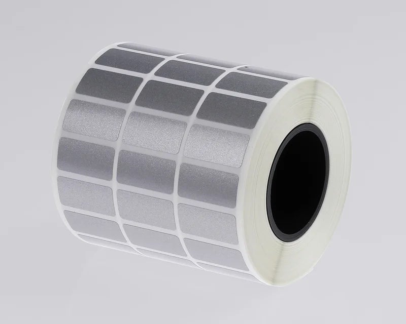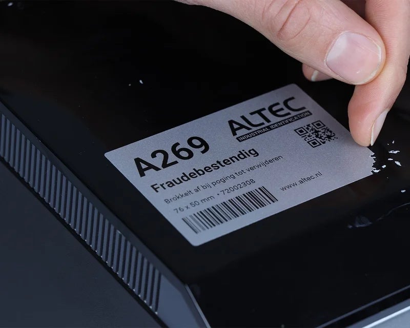 Deze labels hebben een zilveren metal-look en brokkelen af in kleine stukjes bij een poging tot verwijdering. Omdat dit label nauwelijks weg te halen valt, gaat het fraude of vervalsing tegen. Dit maakt ze ideaal voor het coderen van assets.