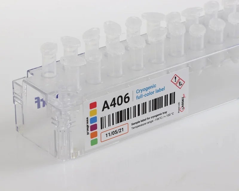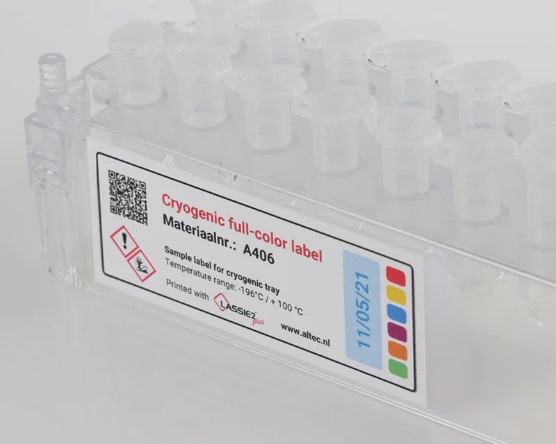 De Cryogenic labels zijn full-color labels die je print met de LASSIE2 Plus of ColorCube labelprinter. Het materiaal is scheurbestendig, krasvast en is uiteraard bestand tegen chemicaliën.
