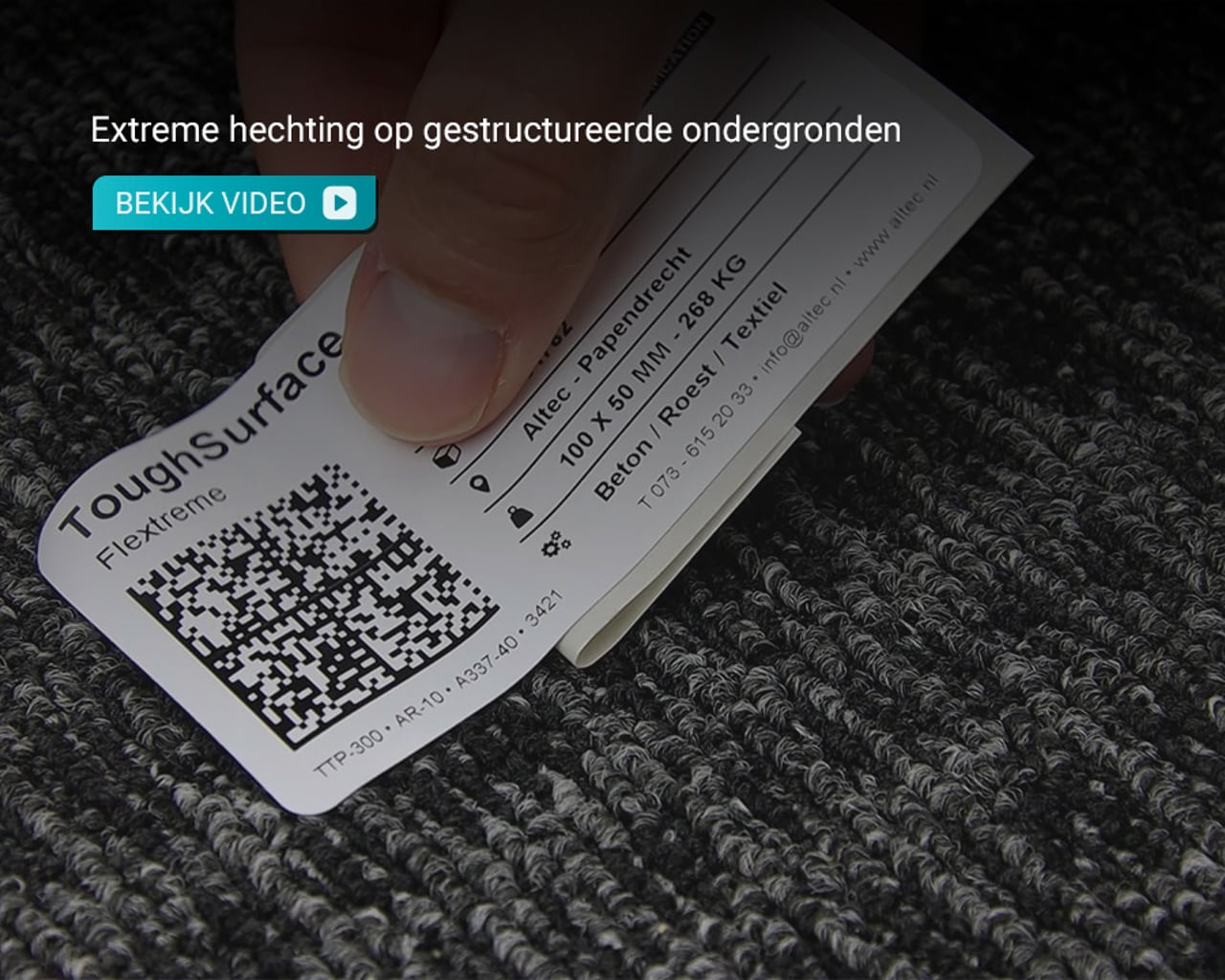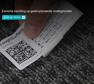Op zoek naar extreme kleefkracht, maar een flexibele vorming? Onze ToughSurface Flextreme labels vormen zich dankzij de dikke kleeflaag en het flexibele materiaal naar de ondergrond. Hierdoor hecht het bijvoorbeeld perfect op betonnen platen of andere ondergronden waar er sprake is van een grove reliëf.