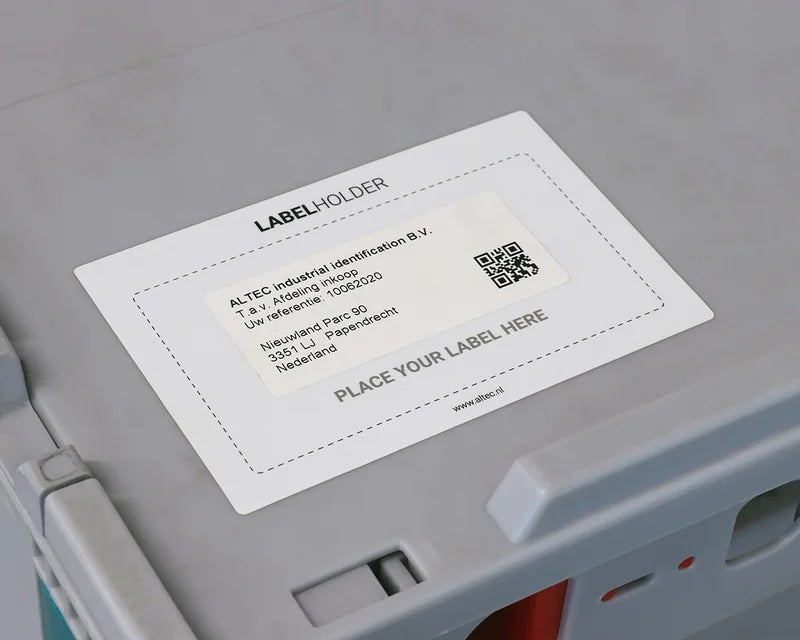 Place Label HereMoet je regelmatig labels wisselen? Bijvoorbeeld productlabels op magazijnstellingen, verzendlabels op transportbakken of prijslabels in de winkel? Dan kan het frustrerend zijn als je bij het verwijderen van je oude labels achterblijvende lijm- en scheurresten ziet. Hoe ga je hier netjes een nieuw label overheen plakken? Place Label Here is een speciaal ondergrond waarop alle labels verwijderbaar worden, met een voorbedrukte tekst die je vertelt waar je je label kan plakken. Je plakt jouw labels dus niet direct op de toepassing, maar op de Place Label Here. Zelfs na jaren gebruik verwijder je het label zonder lijmresten.