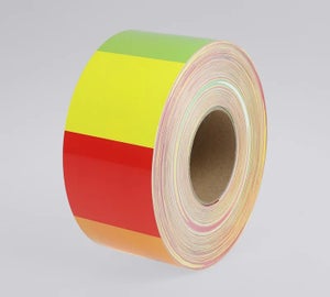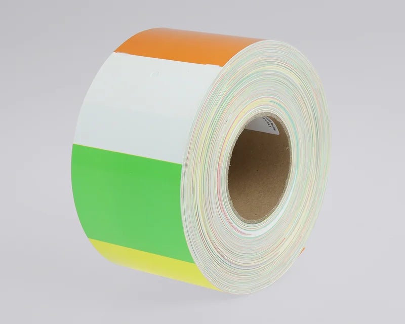 Revisietags zijn beschikbaar in 3 tot 5 verschillende kleuren. Een revisietag in rood, geel en groen wordt daarom ook wel een stoplichtlabel genoemd. Elk deel is gemakkelijk af te scheuren dankzij de perforaties in het label.
