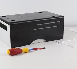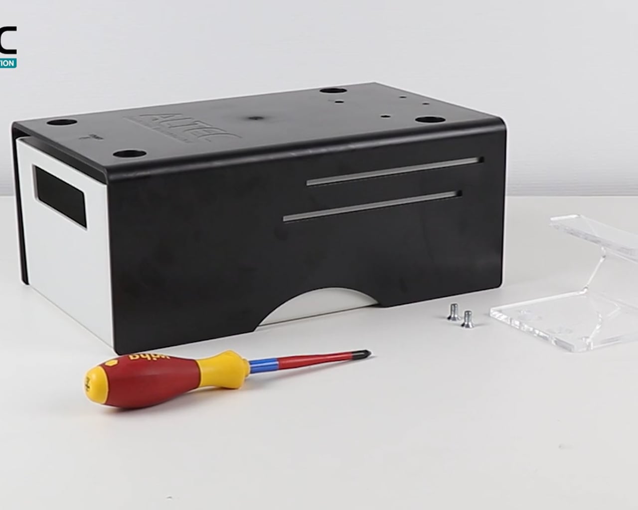 Deze fanfold geleider past precies op de ATP Storage Unit. Dankzij het handige U-vorminge ontwerp print je jouw fanfold labels direct terug de opslagbak van de ATP Storage Unit in. Zo bewaar je je geprinte labels direct stofvrij.