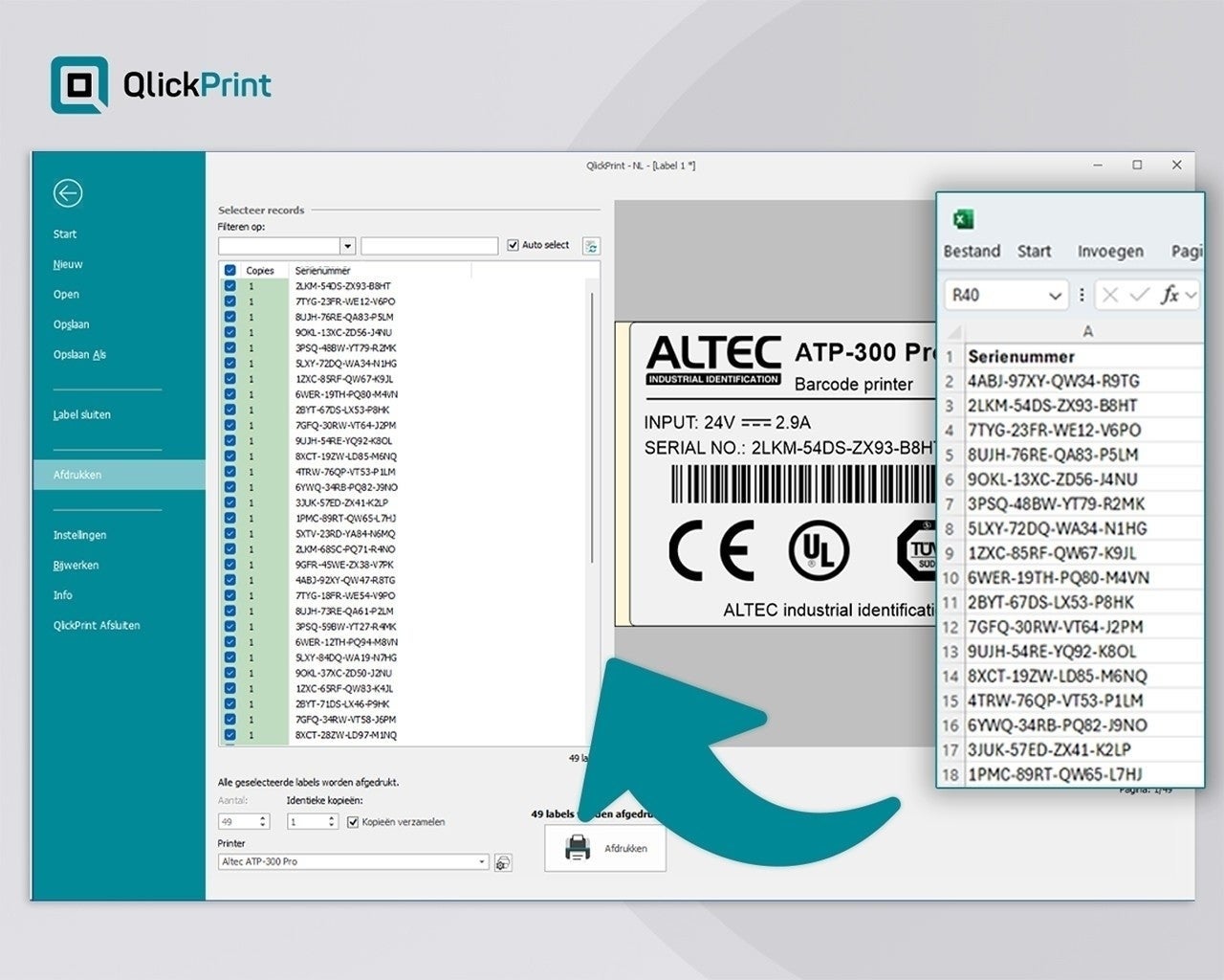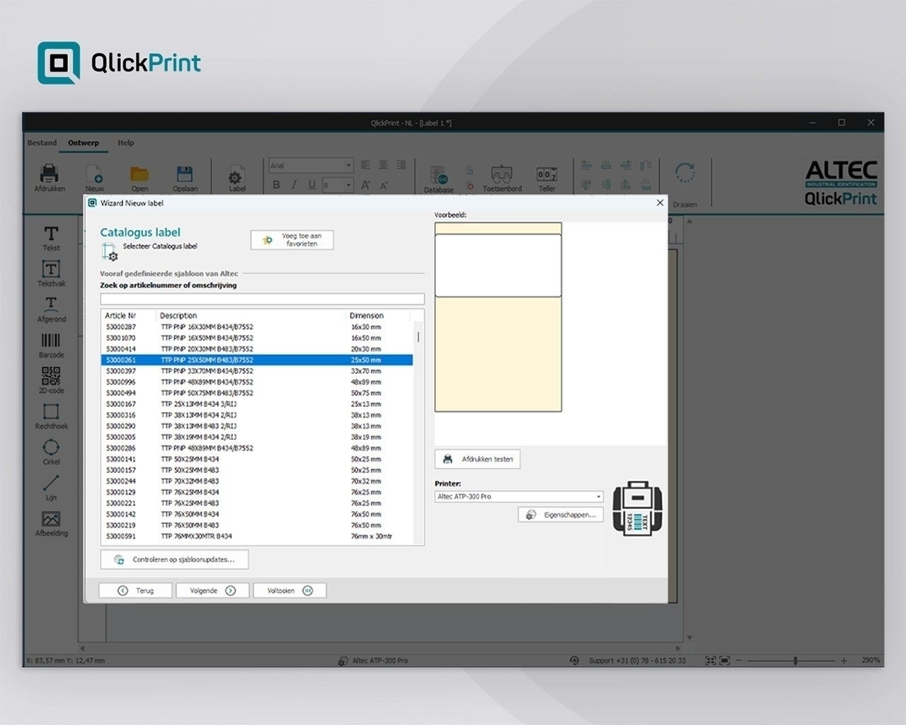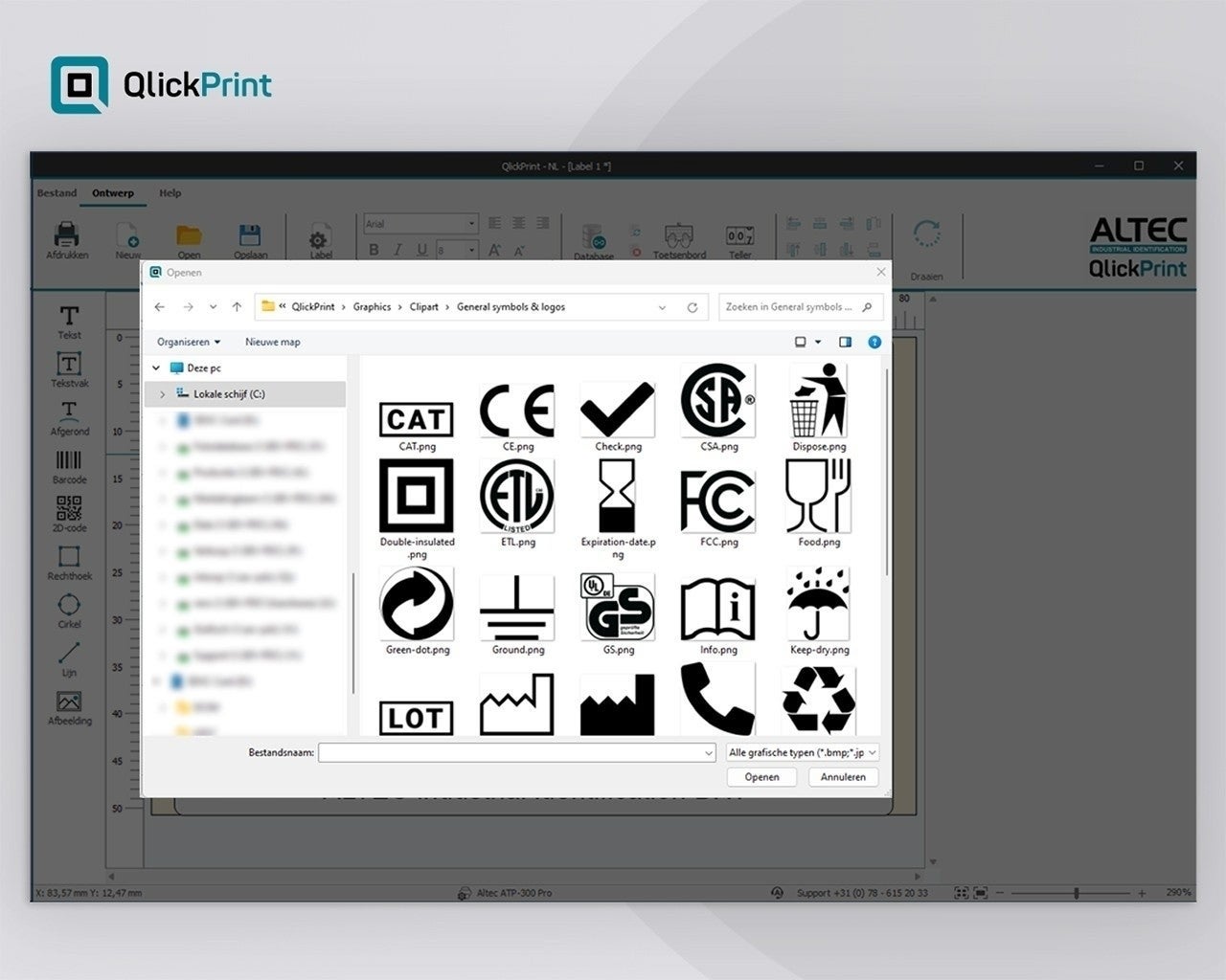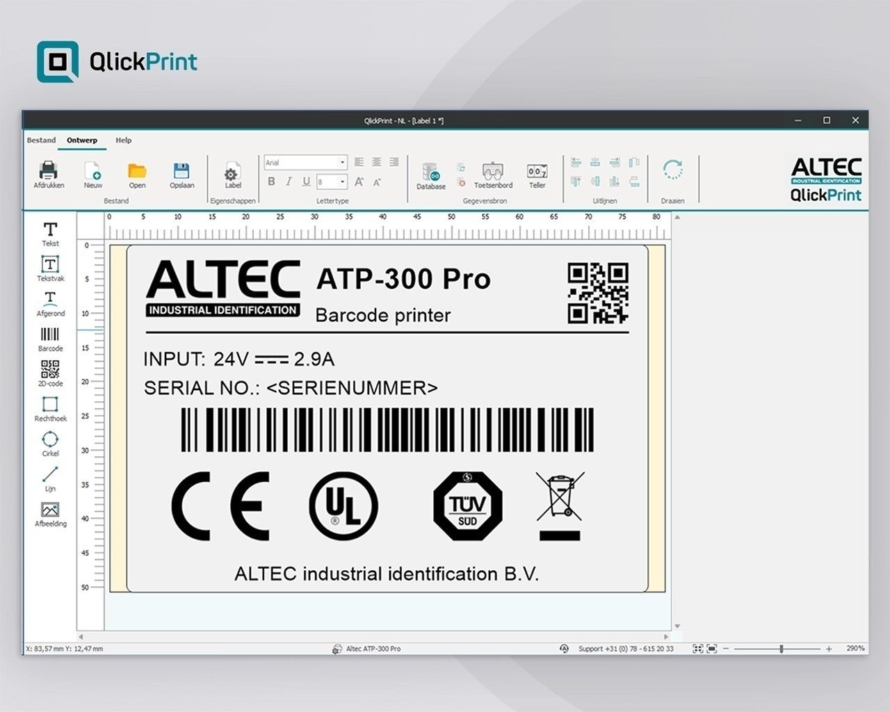 Of je nu barcodes, 2D codes, logo’s of teksten gebruikt voor jouw identificatie, met QlickPrint software print je direct op alle labels uit onze catalogus. En bovendien maak je eenvoudig een koppeling met vrijwel elke databron. De simpele user interface, samen met een aantal handige functies, zorgt ervoor dat werkelijk iedereen foutloos labels kan ontwerpen en printen. Zo helpt de functie Automatisch schalen je om elke tekst automatisch aan te passen naar jouw gewenste formaat. Daarnaast haal je snel logo’s of pictogrammen uit de ingebouwde galerij. En als wij verbeteringen aan QlickPrint toevoegen ben je in één klik over naar de update. Dus geen gedoe met losse downloads of installatiebestanden.