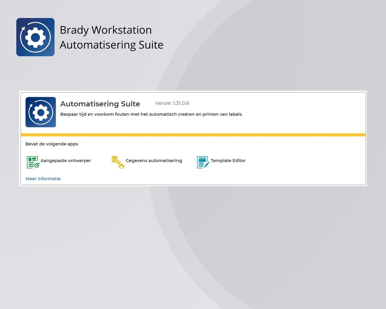 Kies voor een volledige automatisering van uw labelprintactiviteiten met de Brady Workstation Automatisering suite. Na enkele eenvoudige stappen voor het instellen en maken van sjablonen, bent u klaar om automatisch labels te printen.