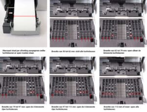 4. Zorg dat het juiste aantal luchtsleuven openstaan, dit is afhankelijk van de breedte van het label